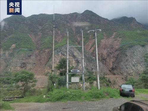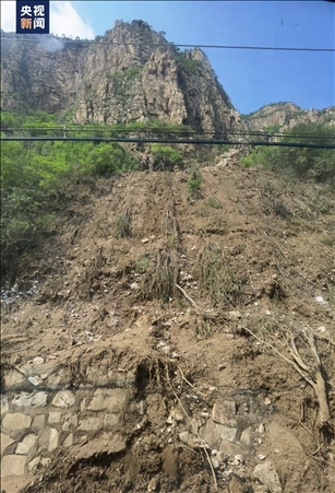 △西南側(cè)山體滑坡后,中間是石頭,兩側(cè)的土已經(jīng)被沖垮,植被已經(jīng)不見。