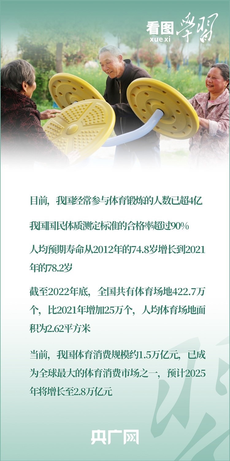 隨著我國城鄉(xiāng)居民生活水平不斷提高,運(yùn)動(dòng)健身日益成為我們?nèi)粘I钪械囊豁?xiàng)重要活動(dòng)。2014年,我國將全民健身上升為國家戰(zhàn)略。習(xí)近平總書記親自謀劃、親自推動(dòng)全民健身事業(yè)發(fā)展,對(duì)實(shí)施全民健身戰(zhàn)略、加快建設(shè)體育強(qiáng)國作出系列重要論述。今天(8月8日)是第15個(gè)全民健身日,一起來學(xué)習(xí)!