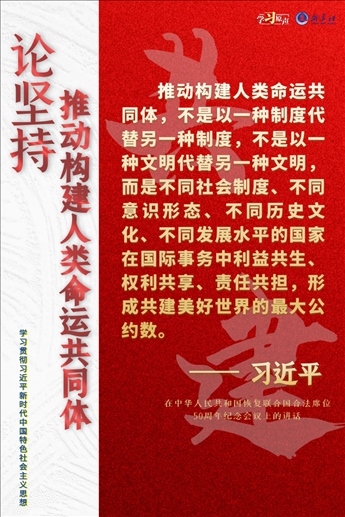 習(xí)近平總書記強(qiáng)調(diào),我們要與世界各國(guó)人民同心協(xié)力,構(gòu)建人類命運(yùn)共同體,建設(shè)持久和平、普遍安全、共同繁榮、開(kāi)放包容、清潔美麗的世界。