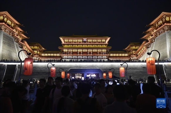 夏夜時(shí)分,河南省洛陽(yáng)市隋唐洛陽(yáng)城國(guó)家遺址公園應(yīng)天門遺址博物館燈火輝煌,熱鬧非凡,滿目的人間煙火再現(xiàn)千年古都繁華盛景。