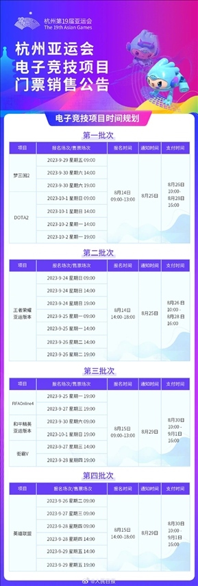 ·杭州亞運(yùn)會(huì)電子競(jìng)技項(xiàng)目門票14日啟動(dòng)銷售。