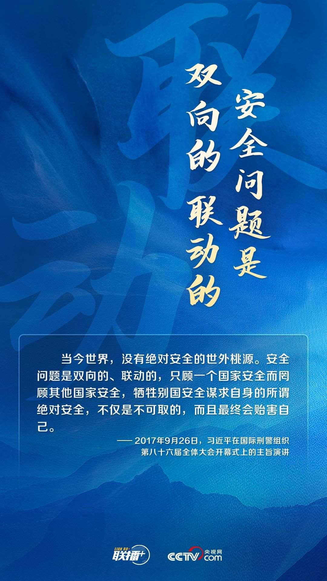 “治國常富,而亂國常貧?!毖胍暰W(wǎng)《聯(lián)播+》特推出海報(bào),與您一同學(xué)習(xí)習(xí)主席關(guān)于全球安全的重要論述。