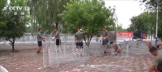 針對當(dāng)前及未來幾天天津氣象變化,有效應(yīng)對大清河兩側(cè)堤壩可能出現(xiàn)的險情,官兵們采取動態(tài)輪換的方式,除了巡堤排險就是制作防洪石籠。像這樣40米一卷的鉛絲網(wǎng)片,他們已經(jīng)用了幾百卷,做好的石籠有500多個。