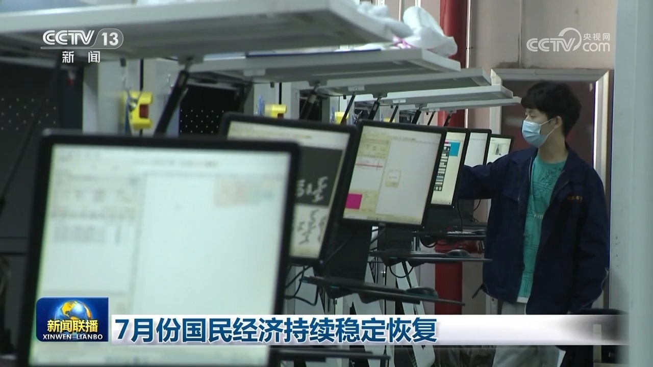 央視網(wǎng)消息(新聞聯(lián)播):國務(wù)院新聞辦今天(8月15日)舉行新聞發(fā)布會,國家統(tǒng)計(jì)局相關(guān)負(fù)責(zé)人介紹當(dāng)前經(jīng)濟(jì)形勢,多項(xiàng)數(shù)據(jù)顯示,7月份國民經(jīng)濟(jì)持續(xù)穩(wěn)定恢復(fù)。