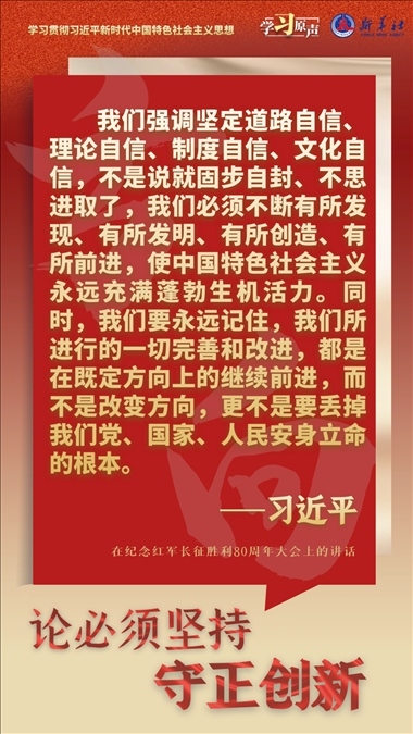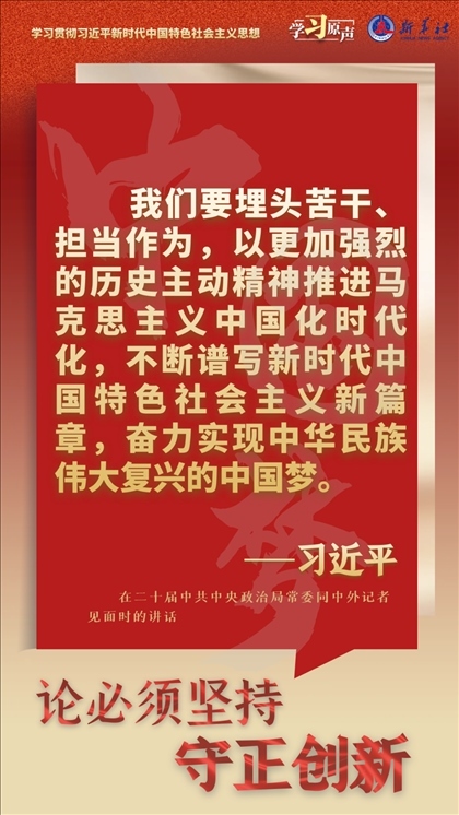 我們從事的是前無(wú)古人的偉大事業(yè),守正才能不迷失方向、不犯顛覆性錯(cuò)誤,創(chuàng)新才能把握時(shí)代、引領(lǐng)時(shí)代。我們要以科學(xué)的態(tài)度對(duì)待科學(xué)、以真理的精神追求真理,堅(jiān)持馬克思主義基本原理不動(dòng)搖,堅(jiān)持黨的全面領(lǐng)導(dǎo)不動(dòng)搖,堅(jiān)持中國(guó)特色社會(huì)主義不動(dòng)搖,緊跟時(shí)代步伐,順應(yīng)實(shí)踐發(fā)展,以滿(mǎn)腔熱忱對(duì)待一切新生事物,不斷拓展認(rèn)識(shí)的廣度和深度,敢于說(shuō)前人沒(méi)有說(shuō)過(guò)的新話,敢于干前人沒(méi)有干過(guò)的事情,以新的理論指導(dǎo)新的實(shí)踐。