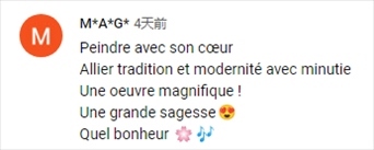 法語(yǔ)網(wǎng)友M*A*G*:“用心作畫(huà),將傳統(tǒng)與現(xiàn)代結(jié)合,華麗的作品,偉大的智慧,這是多么幸福的一件事??!”