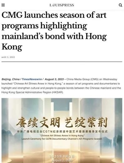 總臺(tái)CGTN在官網(wǎng)發(fā)布的《中國(guó)藝術(shù)香港展播季 讓觀眾零距離觸摸源遠(yuǎn)流長(zhǎng)的中華文明》稿件被來(lái)自美國(guó)、英國(guó)、法國(guó)、澳大利亞、韓國(guó)、加拿大、意大利等20個(gè)國(guó)家和地區(qū)的799家海外主流網(wǎng)絡(luò)媒體轉(zhuǎn)載。美國(guó)《國(guó)際日?qǐng)?bào)》《歐洲僑報(bào)》《葡新報(bào)》《非洲時(shí)報(bào)》《委國(guó)僑報(bào)》、新西蘭格局傳媒網(wǎng)站、歐僑網(wǎng)和日本華商網(wǎng)等海外華文媒體也以多種形式刊載轉(zhuǎn)發(fā)了相關(guān)報(bào)道。