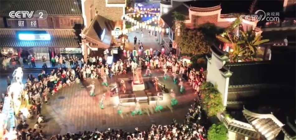 總臺記者 姜文婧:大家看我的身邊現(xiàn)在已經(jīng)聚集了很多人,行進(jìn)式的情景演出《無夢到銅官》已經(jīng)開始了。整場演出都在移步換景中完成,依托古鎮(zhèn)建筑群、街道和各個打卡裝置,營造出漢唐風(fēng)的市井繁華景象,讓游客身臨其境,還可以與演員互動。