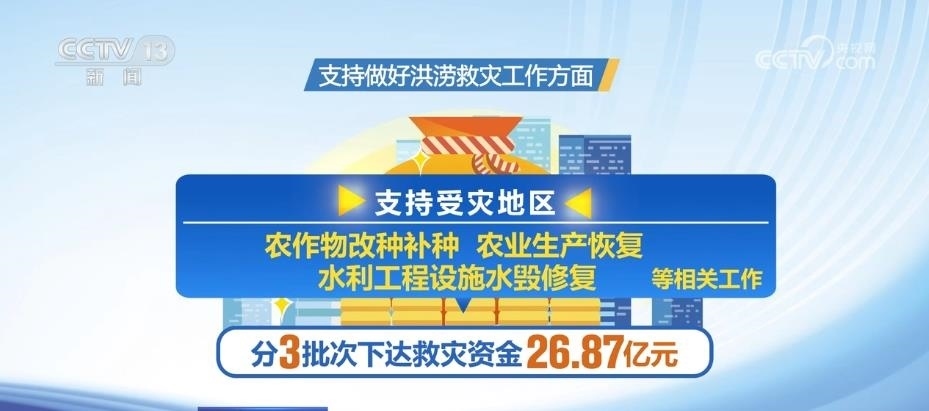 在支持做好洪澇救災(zāi)工作方面,分3批次下達(dá)救災(zāi)資金26.87億元,支持受災(zāi)地區(qū)開展農(nóng)作物改種補(bǔ)種、農(nóng)業(yè)生產(chǎn)恢復(fù)、水利工程設(shè)施水毀修復(fù)等相關(guān)工作。