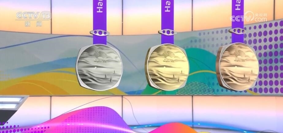 杭州亞運會獎牌名為“湖山”。“湖山”將良渚文化的方形玉琮和圓形的獎?wù)氯跒橐惑w,正面用凸出的線條勾勒出“三面云山一面城”的杭城畫卷,湖水漣漪,山巒起伏。獎牌上方的束扣是一個帶有倒影的三孔橋,設(shè)計取自京杭大運河最南端的拱宸橋。一塊獎牌,將杭州的三處世界文化遺產(chǎn)——良渚、西湖、大運河都融入其中。
