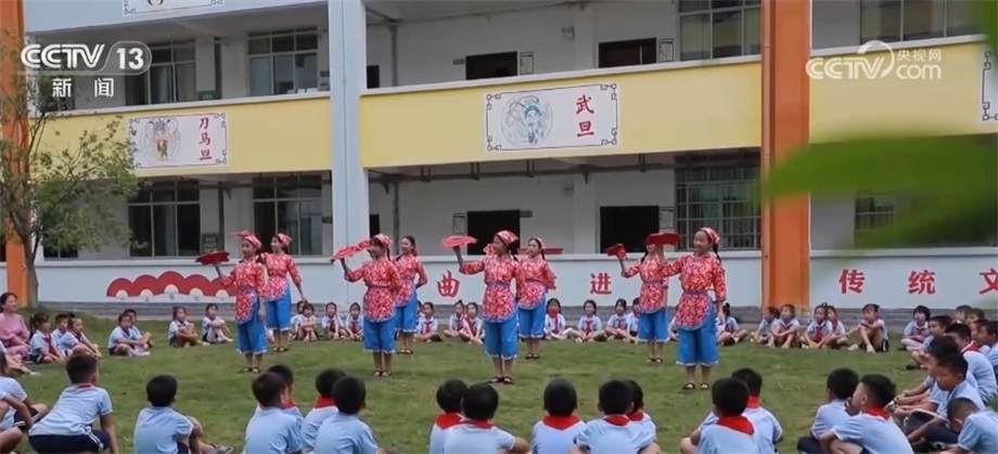 在湖南省永州市蘋(píng)洲小學(xué),一場(chǎng)花鼓戲表演正在進(jìn)行。學(xué)生們化身“小戲骨”,把“唱念做打”基本功表現(xiàn)得淋漓盡致?;ü膽蚴菄?guó)家非物質(zhì)文化遺產(chǎn)之一,今年暑假,永州市蘋(píng)洲小學(xué)將學(xué)唱花鼓戲作為學(xué)生的暑假作業(yè)之一,學(xué)生們自行組隊(duì)進(jìn)行排練,開(kāi)學(xué)第一課就成了孩子們展示暑假作業(yè)的表演專場(chǎng)。