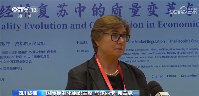 國(guó)際標(biāo)準(zhǔn)化組織主席 烏爾麗卡·弗蘭克:總體來(lái)說(shuō),中國(guó)在過(guò)去幾年的成就是非凡的,無(wú)論是在質(zhì)量提升方面、制定質(zhì)量標(biāo)準(zhǔn)方面,還是在國(guó)際貿(mào)易方面都是如此。