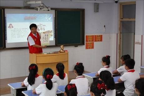 9月1日,陳奇峰為河北省衡水市慶豐街小學的學生們講述雷鋒故事。(趙棟 攝)
