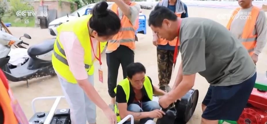 村里有5個蓄水坑,郭義停緊急協(xié)調(diào)多臺排水設備,將蓄水坑排空,分擔降雨壓力。