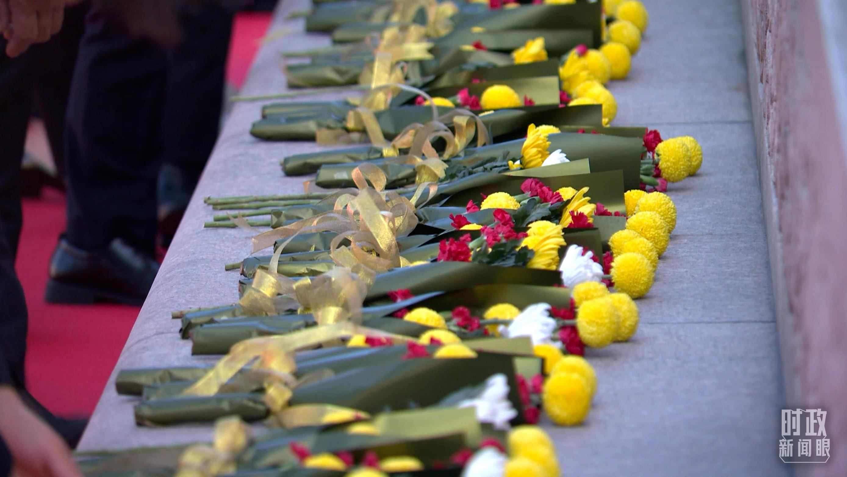 △儀式現(xiàn)場(chǎng)共有18個(gè)由白菊等鮮花組成的花環(huán)。(總臺(tái)央視記者趙化拍攝)