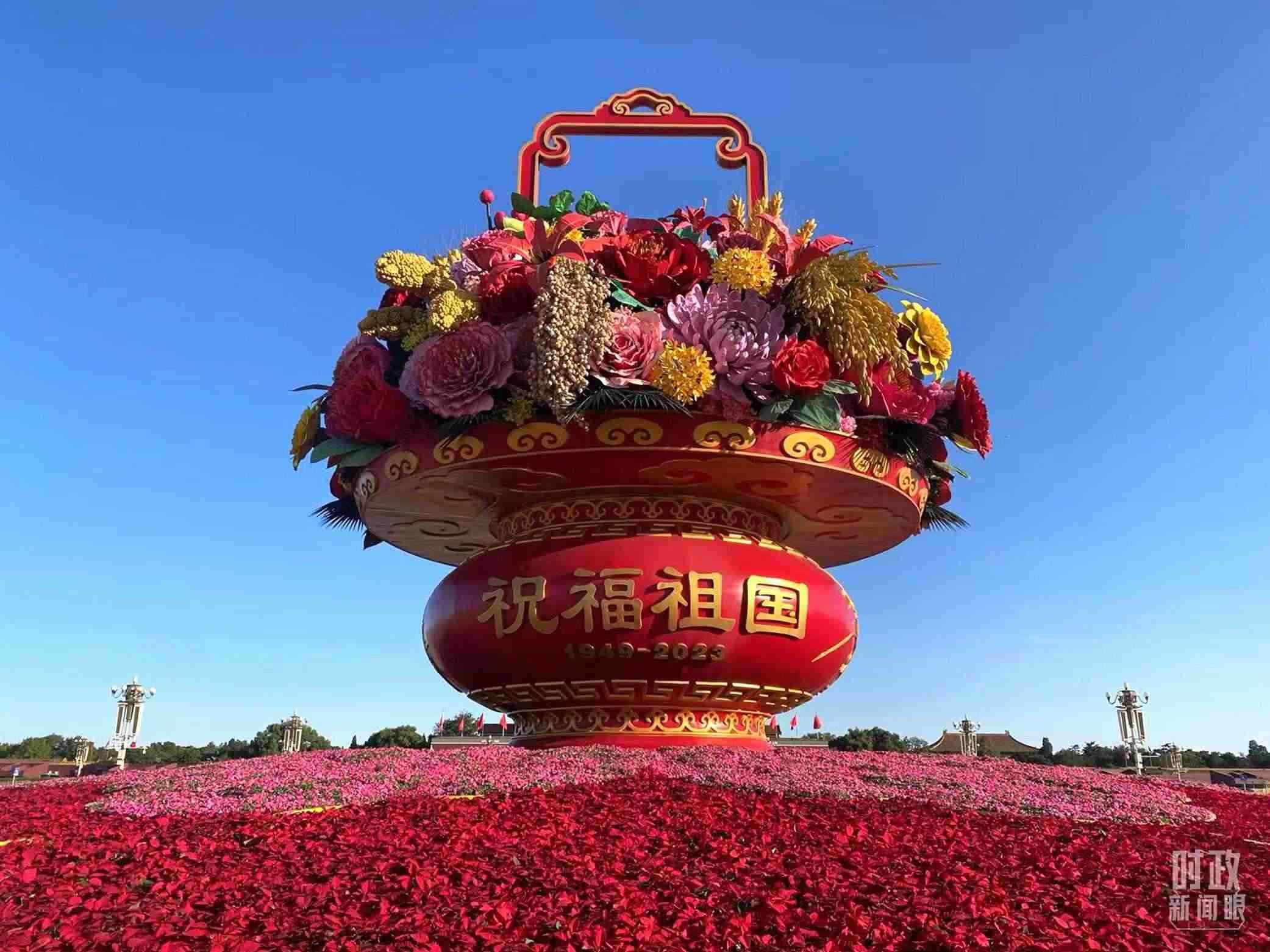 △“祝福祖國(guó)”巨型花籃。(總臺(tái)央視記者曹亞星拍攝)