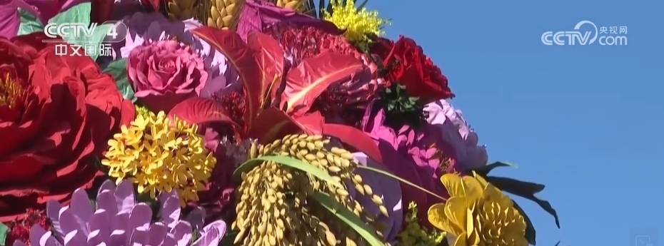 五湖四海的游客來到天安門廣場(chǎng)拍照留念,特別是廣場(chǎng)中央喜慶熱烈的巨型花籃,更成為了最熱門的留影點(diǎn)。2023年,廣場(chǎng)花籃首次裝入象征豐收的五谷元素,體現(xiàn)花團(tuán)錦簇、五谷豐登,表達(dá)了全國(guó)各族人民,在同心共筑中國(guó)夢(mèng)的偉大征途中開創(chuàng)更加美好的未來。