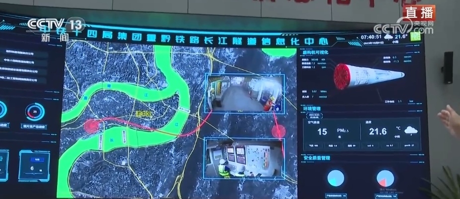 總臺記者 李洪淼:以前修建隧道需要爆破施工,工人在地下需要完成人工打眼、裝炸藥、爆破、出渣等工作,還需要進行后續(xù)的二襯等工序才可以完成隧道建設。而如今,使用盾構機來修建隧道,不僅可以讓隧道建設的效率大大提升,還能改善工人們的工作環(huán)境,安全性也有保障。智慧化的施工監(jiān)測平臺可以對洞內的施工一目了然。