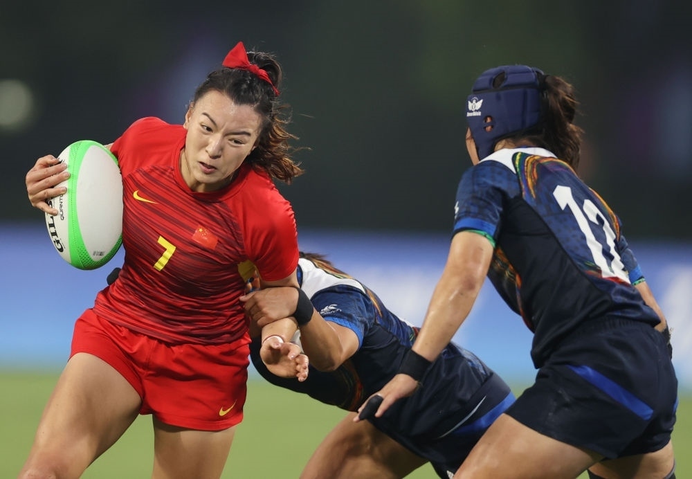 在杭州亞運(yùn)會(huì)的橄欖球賽場(chǎng)上