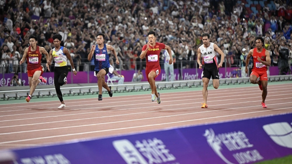 率先進(jìn)行的女子100米決賽中,面對曾經(jīng)在今年亞錦賽上戰(zhàn)勝過自己的新加坡名將佩雷拉,扎著“哪吒頭”的葛曼棋頂住壓力,憑借強有力的沖刺以11秒23率先撞線。隨后的男子決賽,名將謝震業(yè)戰(zhàn)勝了對手,也戰(zhàn)勝了自己。9秒97的奪冠成績是他繼2018年之后,時隔5年再次突破10秒大關(guān)。雖然2.4米每秒的順風(fēng)風(fēng)速讓他的成績不能被計為達(dá)標(biāo)巴黎奧運會的有效成績,但謝震業(yè)賽后表示,雖然超了風(fēng)速,但是成績就在這里,戰(zhàn)勝了自己心里就沒有遺憾。