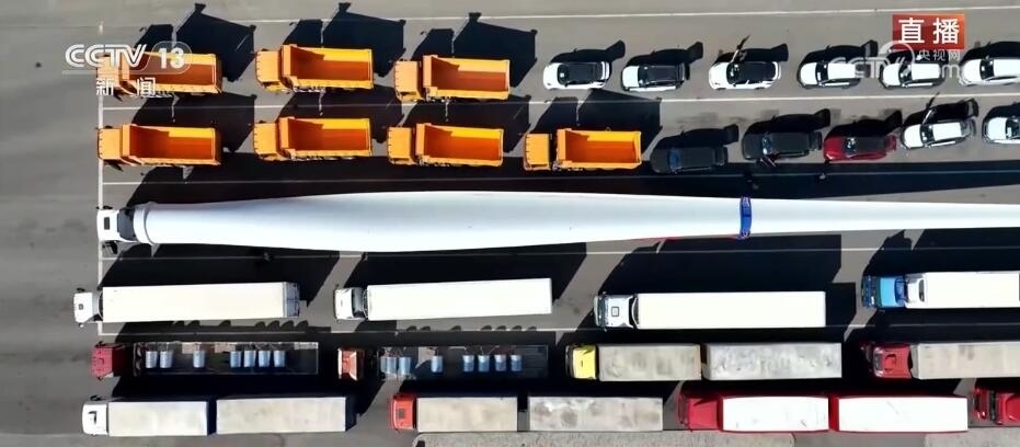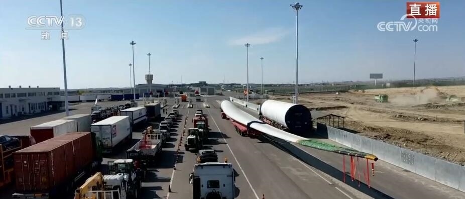 看這邊。大家知道這個(gè)龐大的家伙是什么嗎?它是風(fēng)力發(fā)電機(jī)上的一個(gè)扇葉。根據(jù)不同型號(hào),短的扇葉有三四十米,長(zhǎng)的有七八十米,龐大的塊頭也讓它在出口貨物中格外亮眼。它的這種“出”,出的不僅僅是設(shè)備,還有帶著“中國(guó)技術(shù)”的風(fēng)電項(xiàng)目。中亞地區(qū)有非常豐富的風(fēng)力資源,來(lái)自中國(guó)的風(fēng)電項(xiàng)目、風(fēng)電技術(shù)正全面助力共建“一帶一路”國(guó)家的綠色能源發(fā)展。當(dāng)?shù)卣秃jP(guān)還專門將出境通道拓寬了半米,讓這種超寬、超長(zhǎng)的大型設(shè)備能夠順利出境。