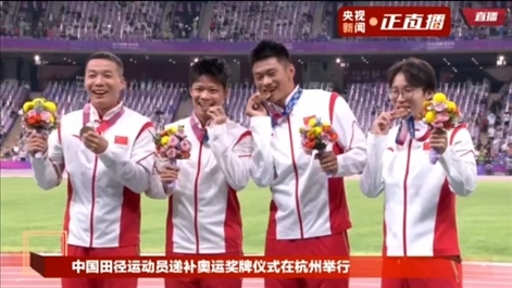10月4日晚,杭州亞運會田徑比賽結束后,中國奧委會在杭州奧體中心體育場舉行遞補奧運獎牌頒獎儀式。