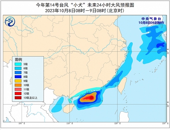 昨日,“小犬”給浙江東部、福建南部、廣東東部等地帶來明顯風(fēng)雨,廣東揭陽、汕頭局地大暴雨。預(yù)計(jì)未來24小時(shí),受冷空氣和“小犬”共同影響,臺(tái)灣島東北部、廣東中部沿海、珠江口附近將有大到暴雨、局地大暴雨(100-150毫米);東海大部、臺(tái)灣海峽、南海北部、北部灣以及浙江沿海、福建沿海、廣東沿海將有6-8級(jí)、陣風(fēng)9-10級(jí)的大風(fēng),其中廣東沿海、南海北部的部分海域?qū)⒂?-11級(jí)、陣風(fēng)12-13級(jí)的大風(fēng),“小犬”中心經(jīng)過的附近海面風(fēng)力有12-14級(jí),陣風(fēng)15-16級(jí)。