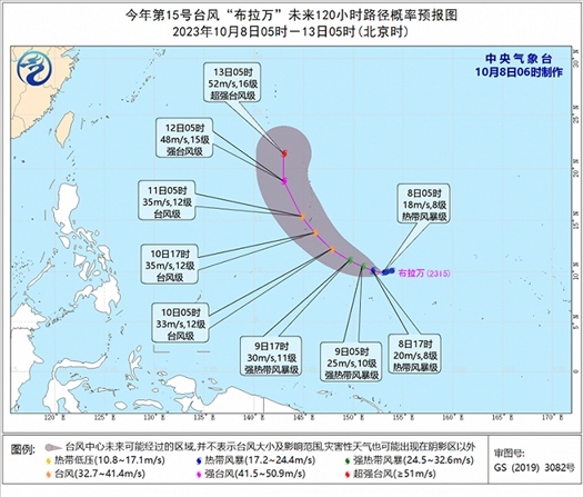 另外,今年第15號(hào)臺(tái)風(fēng)“布拉萬”(Bolaven)于昨天(10月7日)下午生成,今天早晨5點(diǎn)鐘位于關(guān)島塞班東南方向約990公里的西北太平洋洋面上,就是北緯9.9度、東經(jīng)153.0度,中心附近最大風(fēng)力有8級(jí)(18米/秒),中心最低氣壓為998百帕,七級(jí)風(fēng)圈半徑150-200公里。