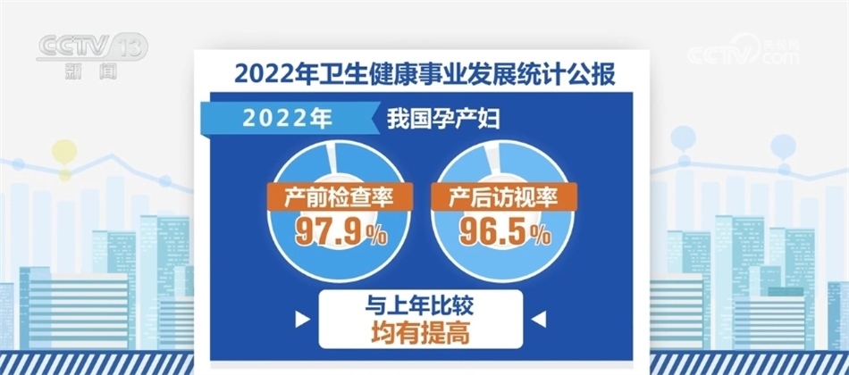 在婦幼健康方面,2022年我國孕產婦產前檢查率97.9%,產后訪視率96.5%。與上年比較,產前檢查率和產后訪視率均有提高。2022年全國住院分娩率為99.94%,基本實現(xiàn)全部住院分娩。據(jù)全國婦幼健康監(jiān)測,2022年,我國5歲以下兒童死亡率6.8‰,嬰兒死亡率4.9‰,全國孕產婦死亡率為15.7/10萬,均有不同程度下降。