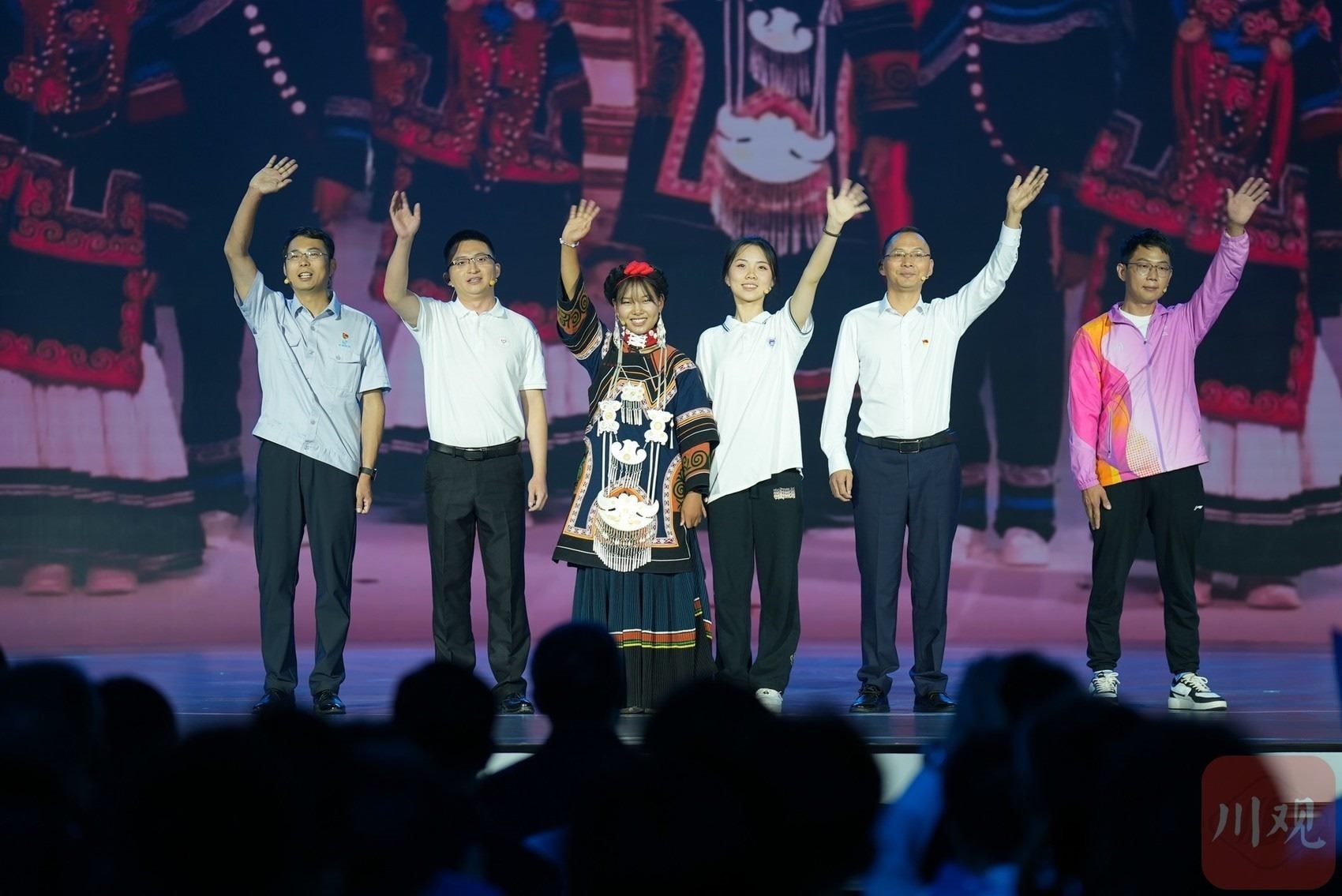 在 “錦水含章”篇章中,以歌曲《紅梅贊》引入,《江姐在川大》編劇冉詩媛、四川大學(xué)“江姐班”學(xué)生代表張鈺、“江姐紀(jì)念館”設(shè)計者段禹農(nóng)、第49屆南丁格爾獎獲得者蔣艷和四川大學(xué)三星堆遺址考古隊隊長黎海超等結(jié)合工作學(xué)習(xí)實踐,動情講述傳承江姐精神矢志報國、援外抗疫展現(xiàn)大愛、創(chuàng)新賦能文博考古故事,生動詮釋紅色傳承、文脈賡續(xù)、人民至上。
