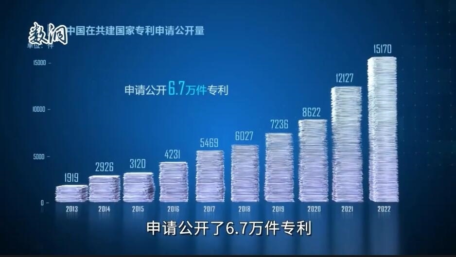 從2013年到2022年,中國在共建國家一共申請(qǐng)公開了6.7萬件專利,年平均增長率達(dá)到26%。其中,有八成以上的專利申請(qǐng)來自企業(yè)。十年間,申請(qǐng)專利的企業(yè)數(shù)量由430家增至2429家,增加了4.6倍。在基礎(chǔ)設(shè)施建設(shè)、能源、貿(mào)易、投資等領(lǐng)域合作中,中國企業(yè)將其所具有的技術(shù)優(yōu)勢(shì),轉(zhuǎn)化成了共建“一帶一路”的強(qiáng)大動(dòng)能。