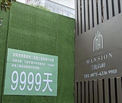 ·昆明一施工圍擋上張貼“拆除倒計時9999天”,官方回應:系工作失誤,已及時撤下。