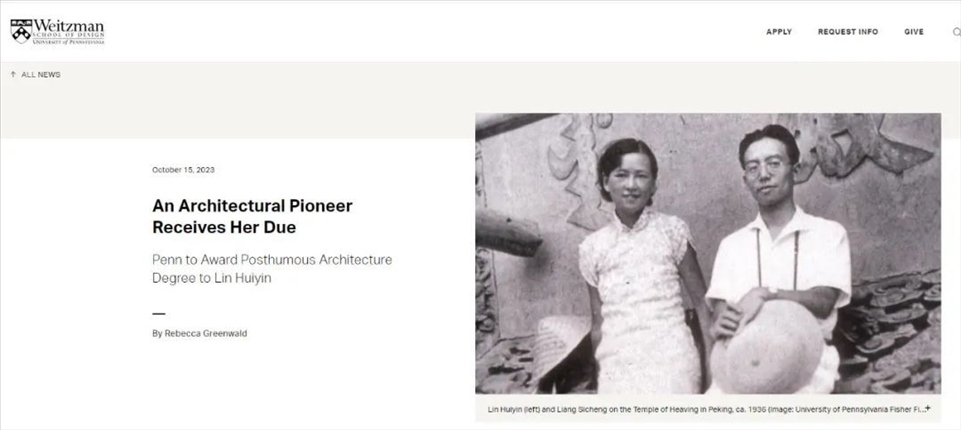·美國賓夕法尼亞大學宣布將追授林徽因建筑學學位。