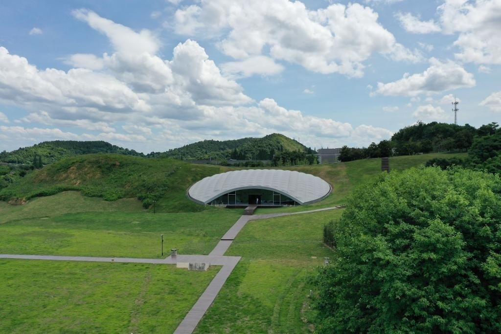 2022年7月6日拍攝的良渚古城遺址老虎嶺遺址公園(無人機照片)。新華社記者 黃宗治 攝