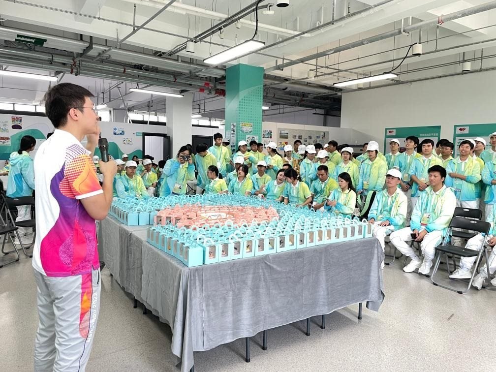 “我們早上五點(diǎn)從學(xué)校出發(fā),晚上七點(diǎn)左右從場館離開。這段時間雖然辛苦,卻很有意義,也結(jié)識到了不少朋友。”鮑明聰擦擦頭上的汗珠笑著說。