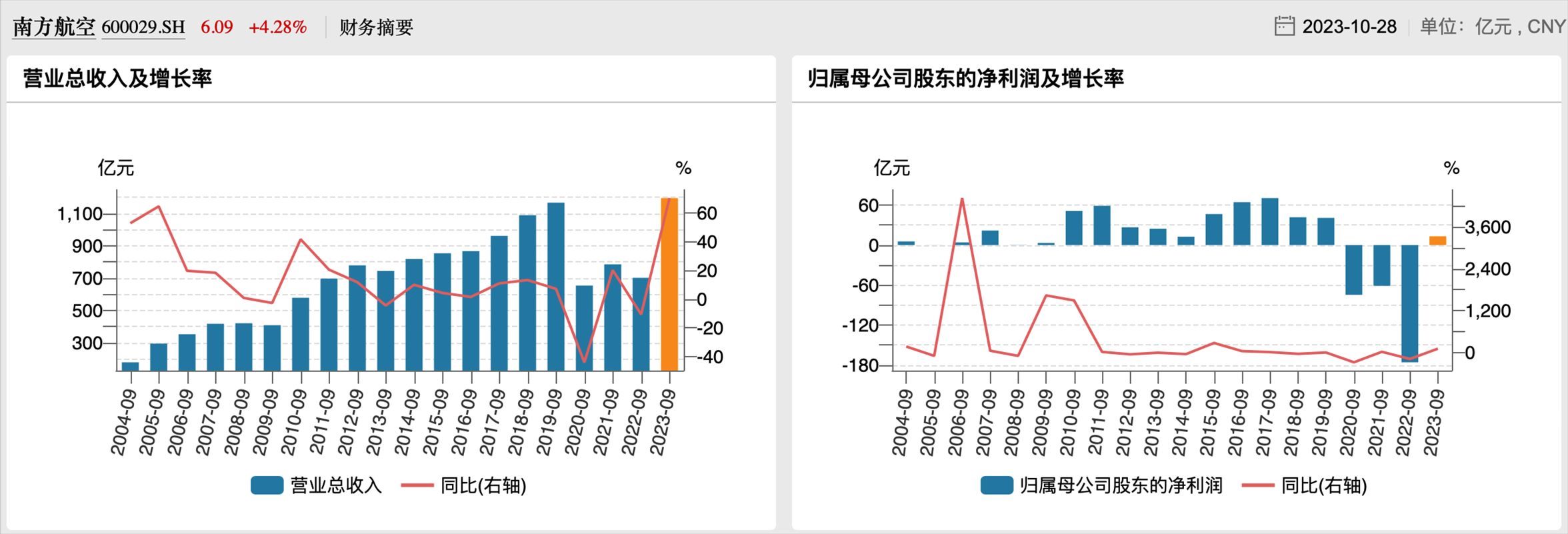 南航歷年前三季度業(yè)績