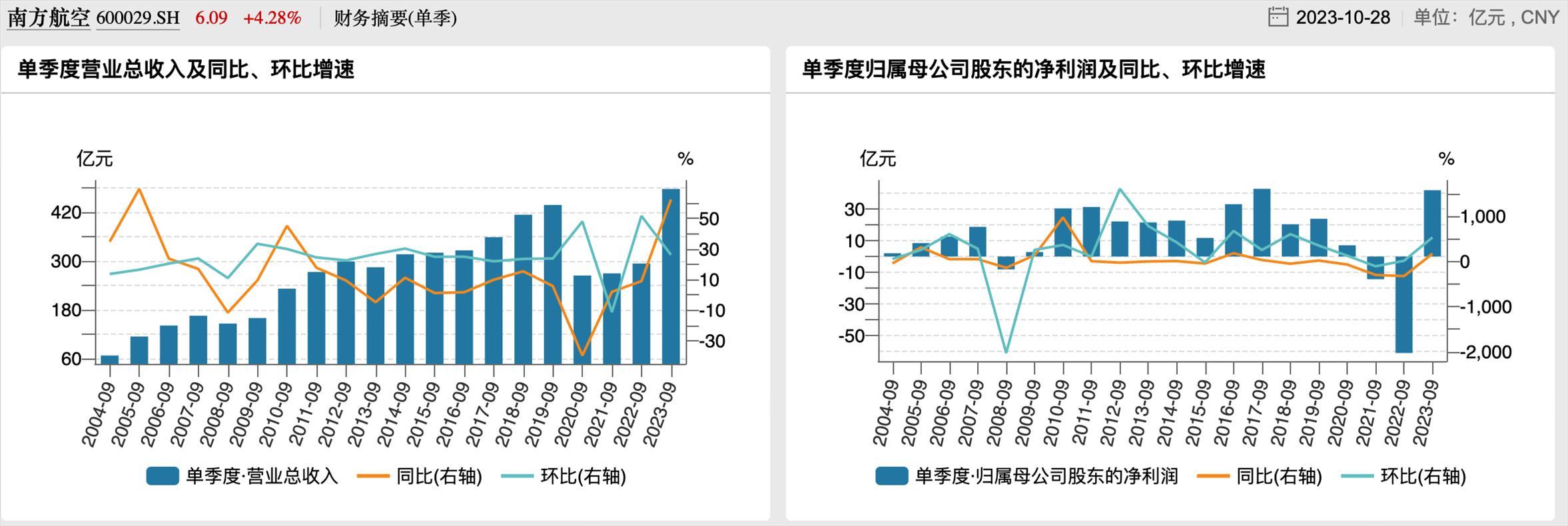南航歷年第三季度業(yè)績