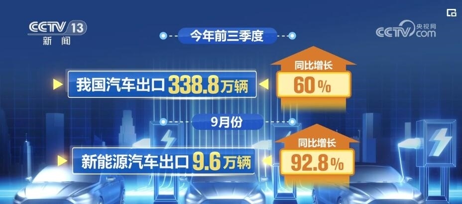 今年前三季度,我國(guó)汽車出口338.8萬輛,同比增長(zhǎng)60%。這其中,新能源汽車的出口增幅十分強(qiáng)勁。其中9月份,新能源汽車出口9.6萬輛,同比增長(zhǎng)92.8%。在不少國(guó)家,中國(guó)的新能源汽車已經(jīng)成為當(dāng)?shù)匦履茉雌囦N量的總冠軍。分析背后的原因,“固本興新”是關(guān)鍵詞,新能源汽車正為中國(guó)外貿(mào)注入新的動(dòng)能。據(jù)中國(guó)汽車工業(yè)協(xié)會(huì)的預(yù)計(jì),2023年汽車出口將超過400萬輛,其中新能源汽車將超過100萬輛。