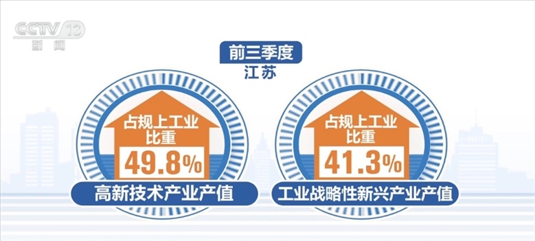 江蘇省今年以來不斷壯大先進制造業(yè)規(guī)模,前三季度,江蘇省高新技術產業(yè)、工業(yè)戰(zhàn)略性新興產業(yè)產值占規(guī)上工業(yè)比重分別為49.8%、41.3%,比上半年均有提升。前三季度,新能源汽車、充電樁產量分別增長80.2%和1.1倍。