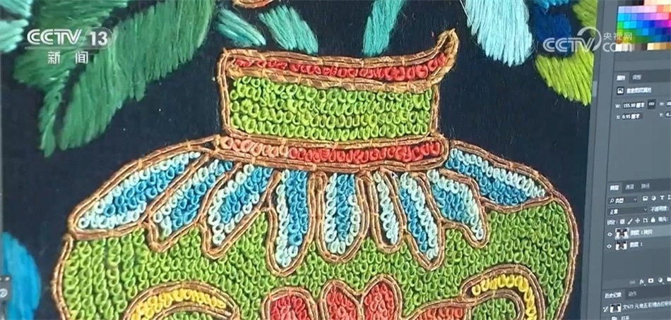 經(jīng)由高清設(shè)備采集、原樣分析、線(xiàn)圖提取,絲綢紋樣的圖案、色彩、針?lè)ā蛹?jí)都在電腦屏幕上一覽無(wú)遺。