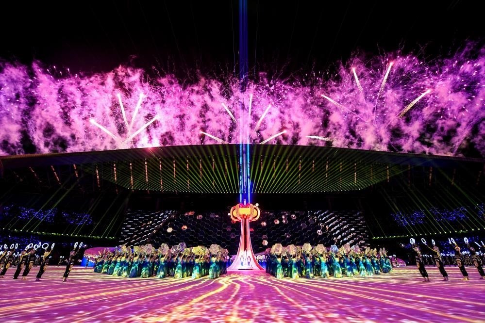 依托山川之壯,擦亮生態(tài)之美。開幕式上,以“聚能環(huán)”和微火燃燒方式舉行的火炬點(diǎn)火儀式凸顯了學(xué)青會(huì)綠色、低碳、環(huán)保的理念,與廣西美麗山水為主體的舞臺(tái)背景相得益彰。