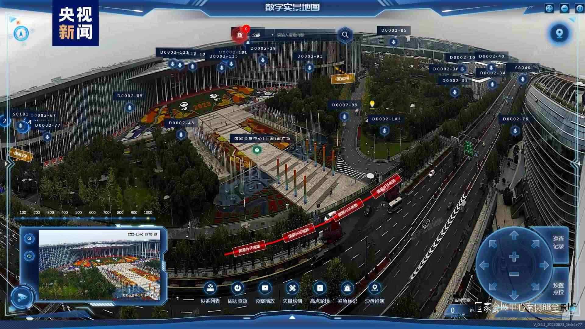 為強化精準指揮調(diào)度,消防部門專門制作了國家會展中心的三維模型,將本屆參展的1888個展位全部進行了數(shù)字化標識,在指揮平臺主頁面可實現(xiàn)目標展位一鍵搜索和快速定位。以6.1號館為試點,通過激光雷達和可見光融合傳感器進行快速掃描,建立展臺的三維精模,配置安保模型算法,將現(xiàn)場監(jiān)控攝像頭傳回的二維畫面與三維模型匹配,實現(xiàn)虛實場景交互融合。同時通過采集巡館人員面部、著裝等特征信息,利用AI算法,實時在館內(nèi)人群中標定巡館人員,進行精準定位。一旦發(fā)現(xiàn)異常狀況,指揮部值班人員能快速、精準地向所有駐防人員提供最佳處置線路指引和最優(yōu)輔助決策。