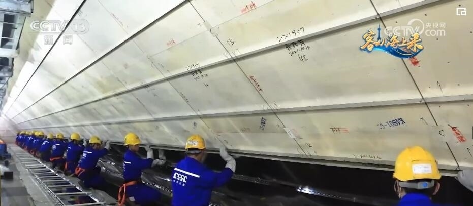 總臺(tái)央視記者 李琳:我現(xiàn)在就來到了一艘正在建造的LNG運(yùn)輸船最核心的液貨艙部分,您看我腳下這種銀光閃閃的鋼板就是能夠承受-163℃的殷瓦鋼,這種薄如紙片的鋼材在2017年以前是不能實(shí)現(xiàn)國產(chǎn)的。