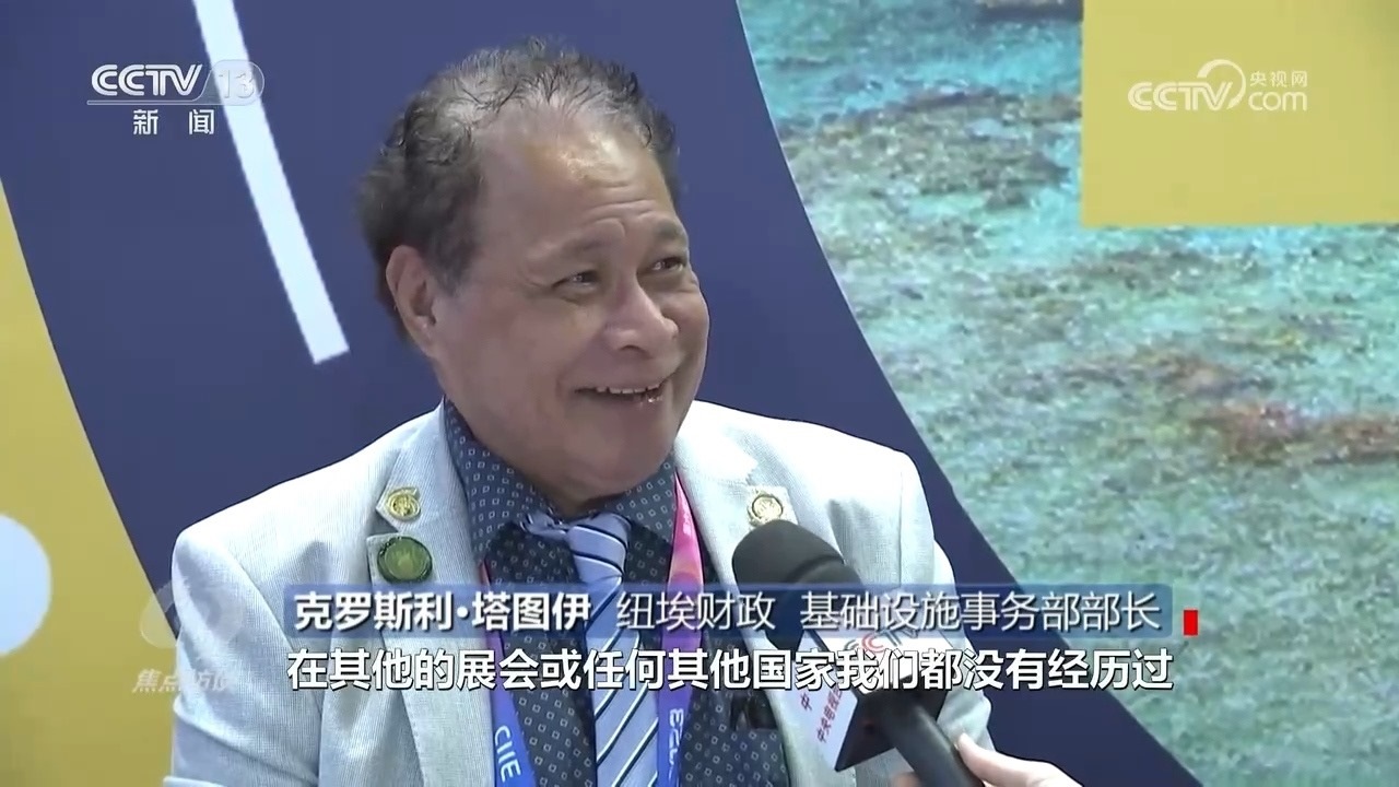 紐埃財政、基礎(chǔ)設(shè)施事務(wù)部部長克羅斯利·塔圖伊:“這對我們來說是一次非常獨特的經(jīng)歷,在其他展會或國家我們都沒有經(jīng)歷過,這是歷史性的突破。感謝中國平等對待小國家,并讓我們通過進博會被世界知曉。無論國土大小、人口多少,都把我們當朋友,我們期待著以后都來參加進博會。”