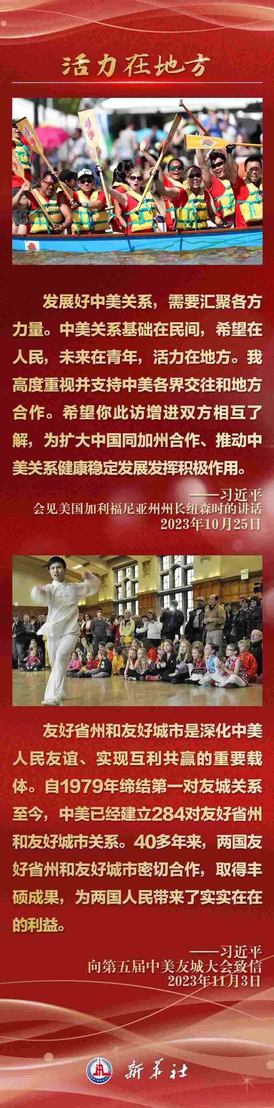 今年以來,從在京會見美國各界人士,到向“鼓嶺緣”中美民間友好論壇等活動致賀信,再到復信美國華盛頓州“美中青少年學生交流協(xié)會”、史迪威將軍后人、飛虎隊老兵等友好人士,習近平主席同美國各界真摯互動,強調(diào)中美關(guān)系基礎(chǔ)在民間,希望在人民,未來在青年,活力在地方。