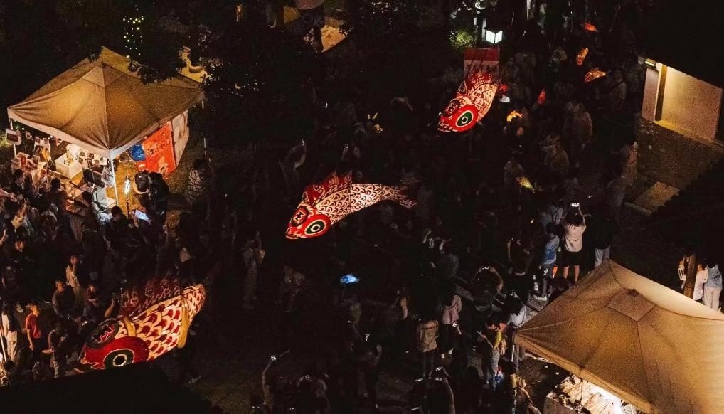 中秋國慶長(zhǎng)假期間,汪滿田魚燈參加了蘇州石湖景區(qū)的手作藝術(shù)節(jié)。(張小君 攝)