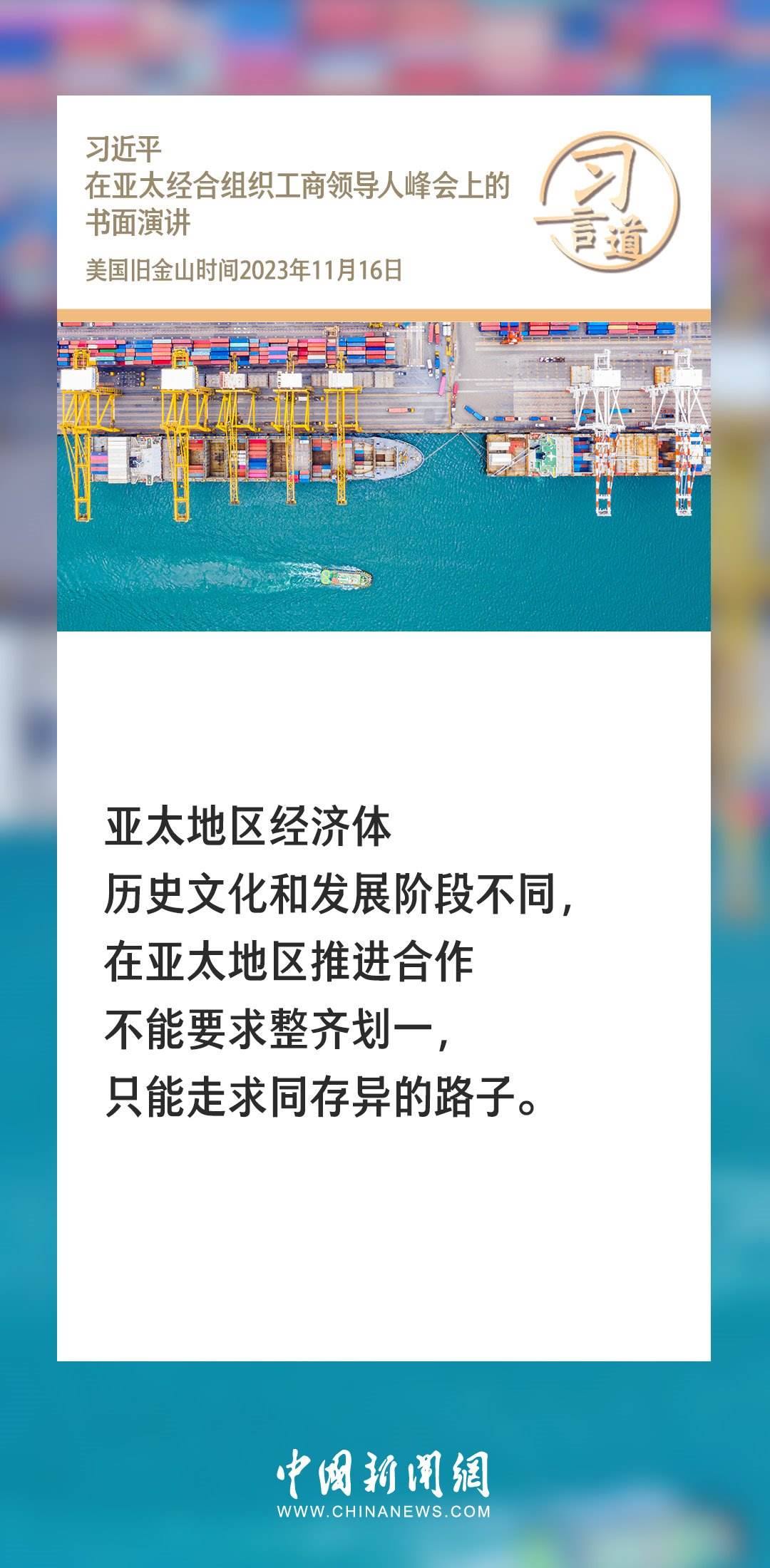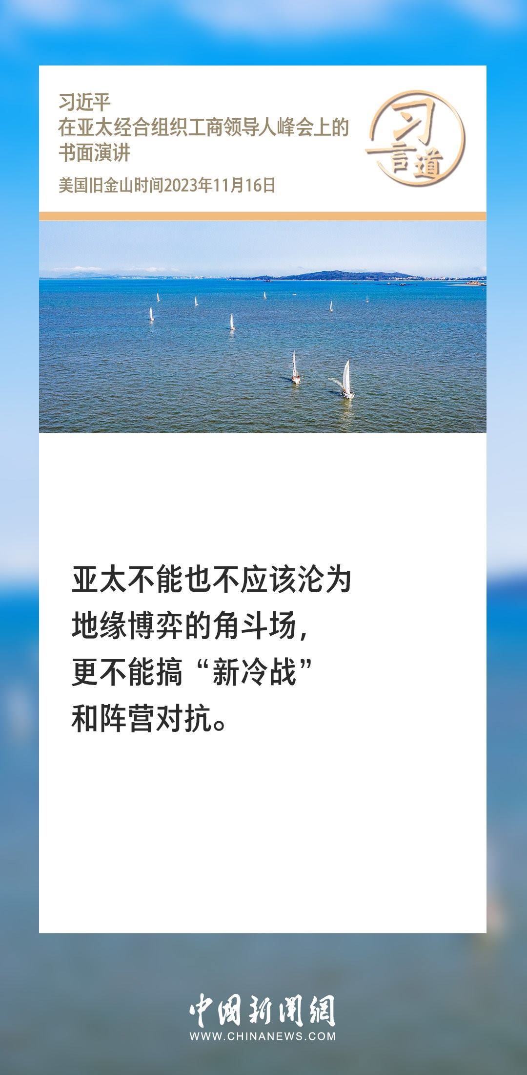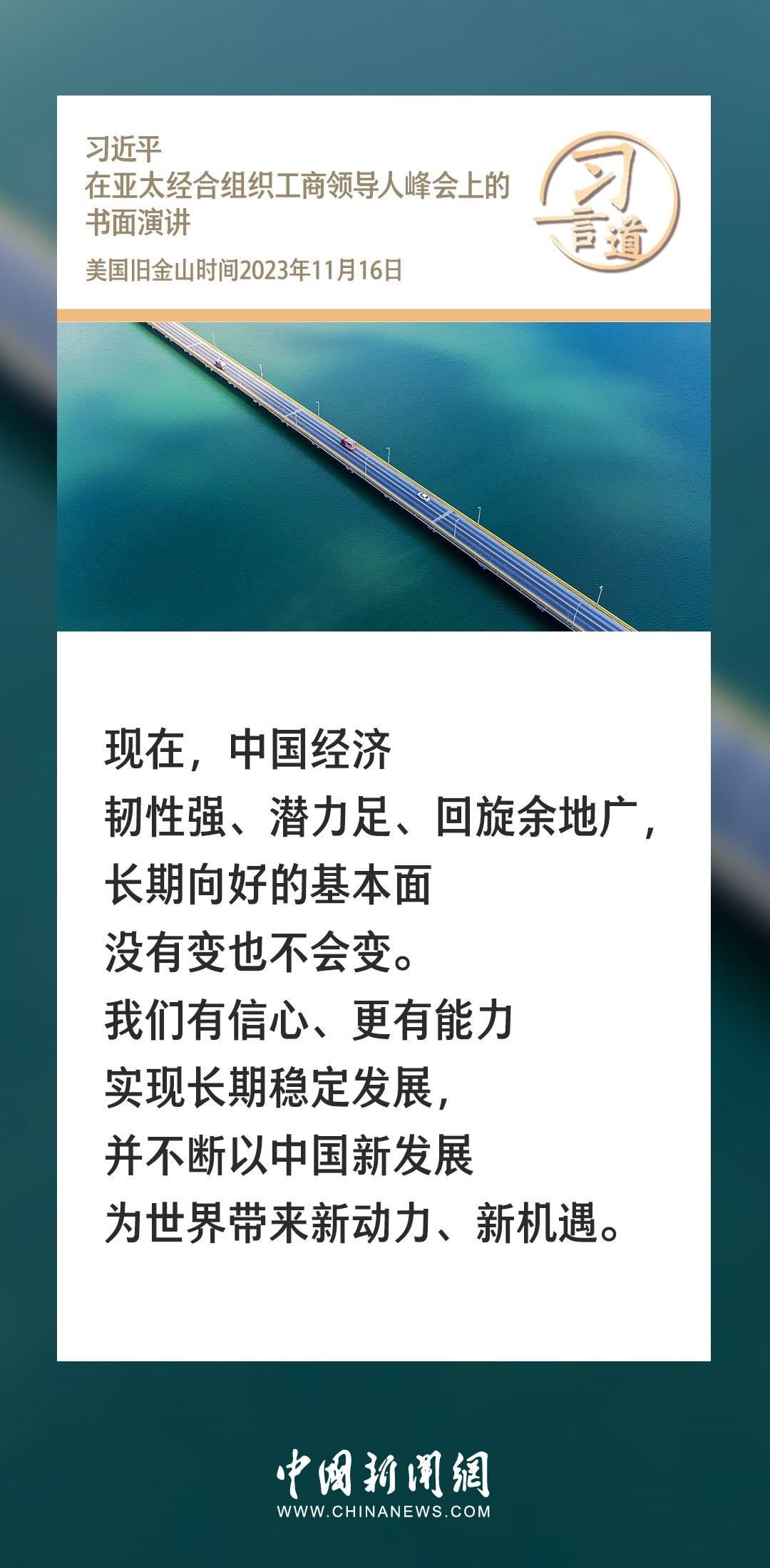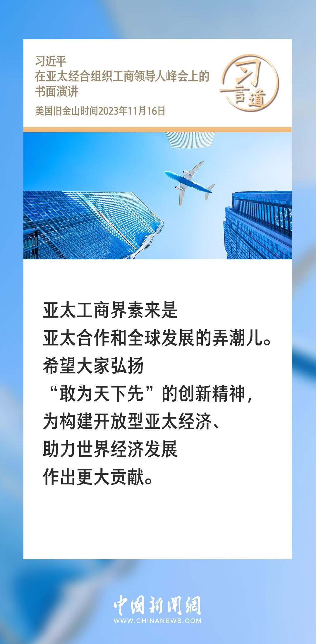 當(dāng)?shù)貢r(shí)間11月16日上午,國(guó)家主席習(xí)近平向在舊金山舉行的亞太經(jīng)合組織工商領(lǐng)導(dǎo)人峰會(huì)發(fā)表題為《同心協(xié)力 共迎挑戰(zhàn) 譜寫(xiě)亞太合作新篇章》的書(shū)面演講。習(xí)近平指出——