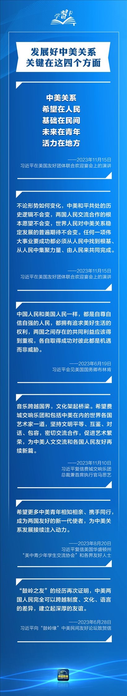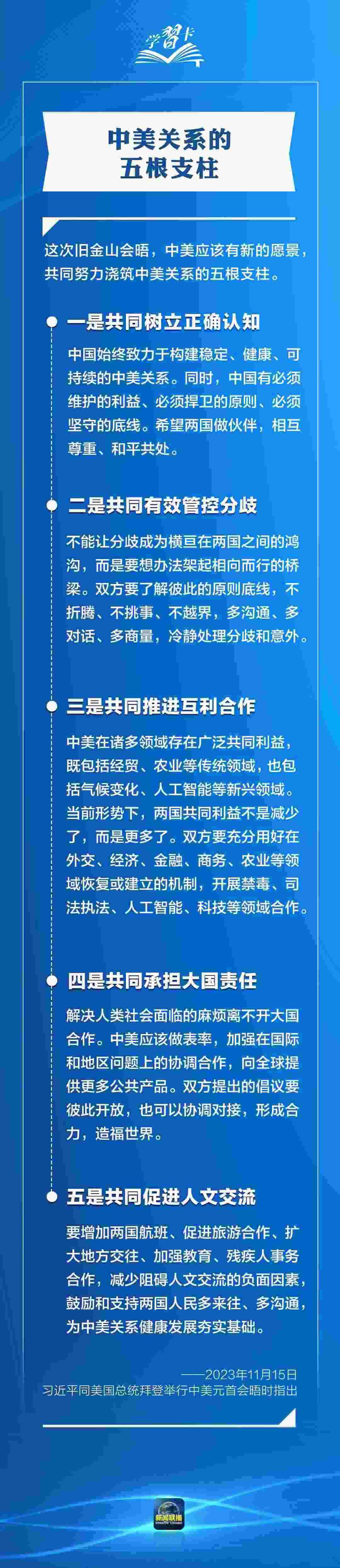 習近平多次指出,作為兩個世界大國,中美能否確立正確相處之道,攸關世界和平發(fā)展和人類前途命運。發(fā)展中美關系,習主席強調三點原則、四個方面、五根支柱,一起學習→