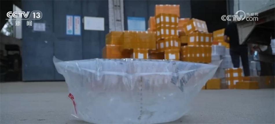 四個(gè)月后,向寨村破解了錦鯉“活體運(yùn)輸”的瓶頸:把錦鯉裝進(jìn)特殊材料制成的密封袋子內(nèi),充進(jìn)氧氣后再進(jìn)行熱合封口,新的包裝方式將破損率降低到百分之五以?xún)?nèi),即便成年人站在上面,袋子也不會(huì)破損。