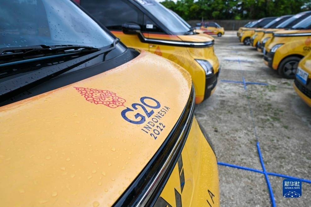這是2022年11月12日在印度尼西亞巴厘島二十國集團(G20)領導人第十七次峰會主會場拍攝的五菱新能源車。新華社記者 徐欽 攝